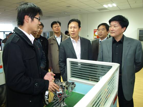 代表团一行首先来到科技园展厅,详细了解科技园的规划建设、特色领域及发展战略,随后走进大学生创业园,考察了大学生创业企业。高雪坤市长饶有兴趣地参观了由大学生发明的机器人,并与创业大学生亲切交谈。高市长表示,大学科技园依托矿业大学,通过辐射战略,在许多地区建立了孵化基地,希望矿大科技园也能到淮安建立孵化基地。
