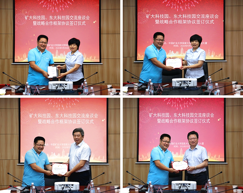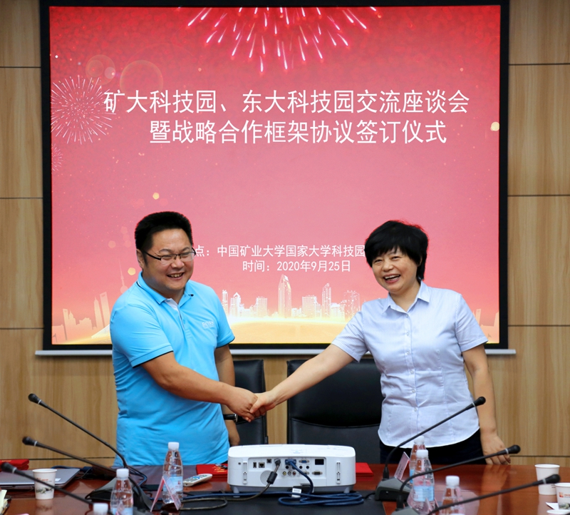 双方签订了《中国矿业大学国家大学科技园与东南大学国家大学科技园战略合作框架协议》。作为战略合作伙伴,矿大科技园与东大科技园将通过建立紧密协作和沟通机制,不断拓宽合作领域,提升合作水平,为增强整体竞争实力而共同努力,实现双园强强联合、优势互补、合作双赢、共同发展的目标。