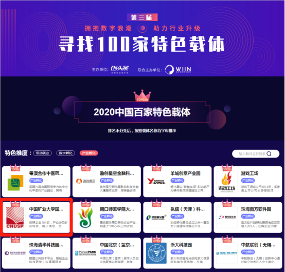 近日,“2020中国百家特色载体”评选落下帷幕,通过网上填报、在线投票、专业评选等严格程序,矿大科技园从来自全国30余个省、市、地区孵化载体共1007个站点中脱颖而出,获评“2020中国百家特色载体(产业孵化类)”荣誉称号。