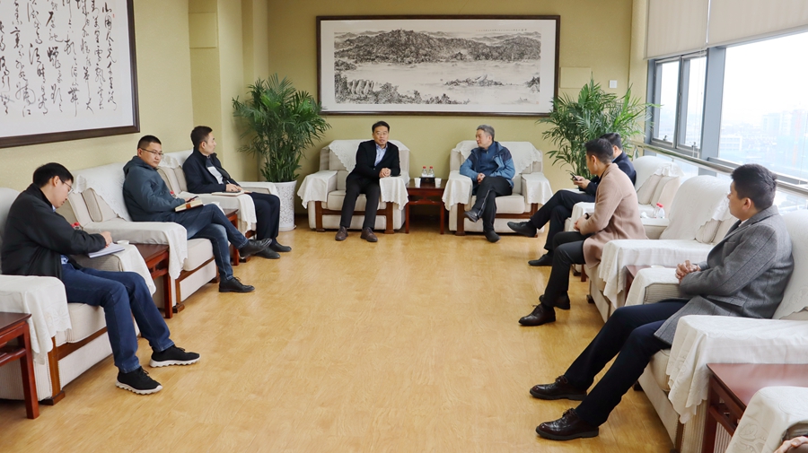 王森总经理首先对丁宏处长一行的到来表示热烈欢迎,随后简要介绍了矿大科技园的基本情况。他介绍,矿大科技园作为典型校府合作共建科技园、作为中国矿业大学成果转化的窗口平台,在助力优秀项目落地发展,连接企业发展、地方经济发展等方面发挥了独特的桥梁和纽带作用。他指出,中国矿业大学在地下空间安全工程领域的学科优势显著,着重结合园区“十四五”转型发展期将围绕智能装备、地下安全、应急管理、生态修复、碳中和、碳达峰几个方向重点打造服务特色,园区充分利用矿业大学双一流学科的优势与强势专业更好服务地方经济。