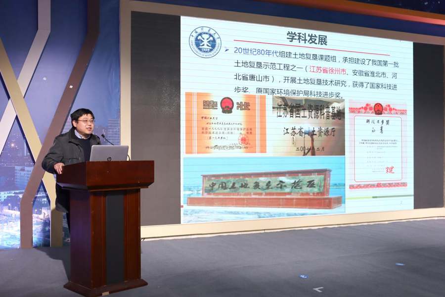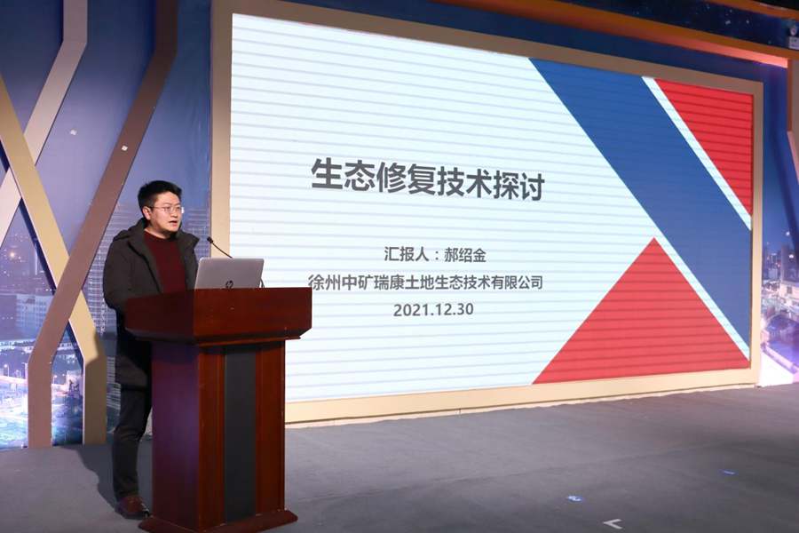 “青科讲堂”环节,中国矿业大学环境与测绘学院国土工程系党支部书记侯湖平以“江苏省矿山生态修复激励机制研究”为题,从研究背景、江苏/徐州矿产资源概况、国内外矿山生态修复的做法、江苏矿山生态修复的做法、矿山生态修复激励政策分析、相关政策建议等6个方面做了经验分享。“揭榜答题”环节,徐州中矿瑞康土地生态技术有限公司总经理郝绍金作为企业代表,以“生态修复技术探讨”为题作研究汇报,简要介绍企业情况并根据企业面临相关技术挑战向在场专家提出问询。中国矿业大学环境与测绘学院实验中心副主任赵华作为青年科技工作者代表,从质量生态型土地复垦、煤矿沉陷区生态环境综合治理、煤矿区国土资源协调利用等三个角度,为企业进行“一对一”技术诊断服务,实现了产创精准供需对接。