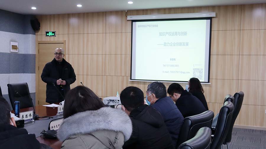 知识产权专题授课环节,徐州市知识产权行业协会会长李思伟以“知识产权运用与创新—助力企业创新发展”为题,围绕“知识产权你应该这样理解”“运用知识产权助力企业发展”“专利布局未来”三个方面作经验分享,重点就不良知产处理、知产风险规避、高价值专利布局等问题进行深入剖析。