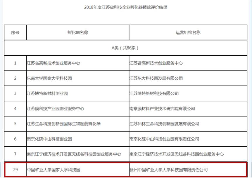 矿大科技园在江苏省科技企业孵化器绩效评价中获评优秀