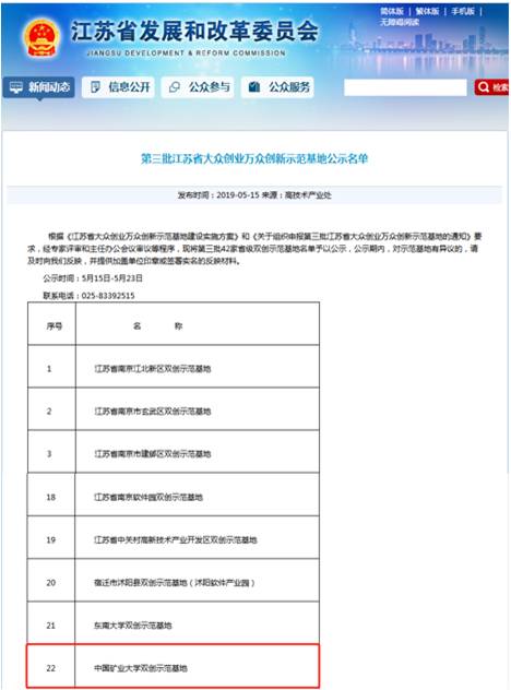 5月15日, 江苏省发展和改革委员会发布了“第三批江苏省大众创业万众创新示范基地”公示名单。
