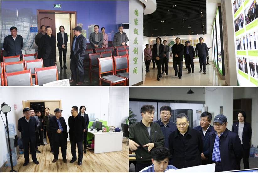 在董海林总经理的带领下,调研团首先观看了矿大科技园宣传片,随后依次参观了矿大科技园荣誉墙、淮海经济区技术产权交易中心(见注1)、“赢在徐州 双创大赛”路演基地,太阳谷创新驿站(国家级众创空间)、大学生创业园和矿大科技园淮海数字文化发展中心(见注2)。