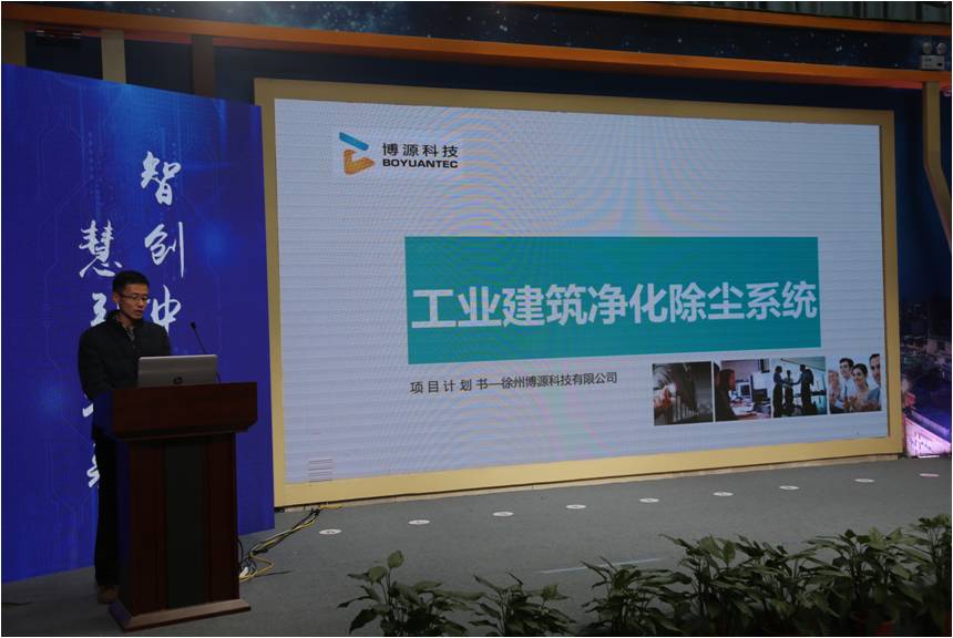 在路演决赛环节,来自江苏引力环保科技有限公司、徐州博源科技有限公司、徐州中矿三维软件有限公司等企业负责人带来了“空气净化技术领跑者”、“ 工业建筑净化除尘系统”、“ 高校虚拟实验中心建设”等项目展示。