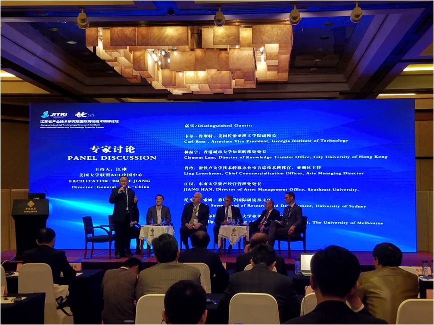 为扩大和深化与国际顶尖高校的交流与合作,集聚国际优质创新资源,引进国际重大创新成果,11月8日下午由江苏省产业技术研究院(省产研院)、美国大学联盟(ACL)中国中心联合举办的国际高校技术转移论坛在南京金陵饭店顺利召开。中国矿业大学国家大学科技园总经理、中国矿业大学国家技术转移中心主任董海林应邀出席会议。