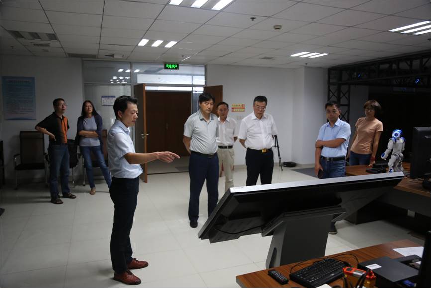 隋志强一行参观了中国矿业大学物联网(感知矿山)中心,中心负责人向隋志强一行介绍了感知矿山公共平台服务,平台通过数据采集、整合信息的方式,进行煤矿人员定位、区域定位、矿工动态管理以实现实时监控、预警预测、设备检测等。