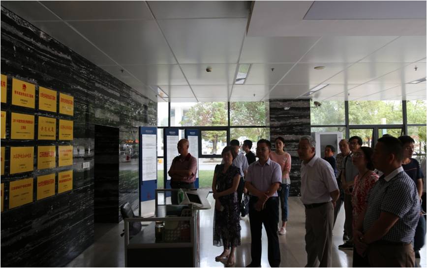 在科技大厦一楼大厅荣誉墙前,党建民向安瑛一行介绍了矿大科技园的发展历程和所获荣誉,随后参观了淮海经济区技术产权交易中心、“赢在徐州”录播基地,并向他们讲解了技术产权交易中心的职能和运作模式。