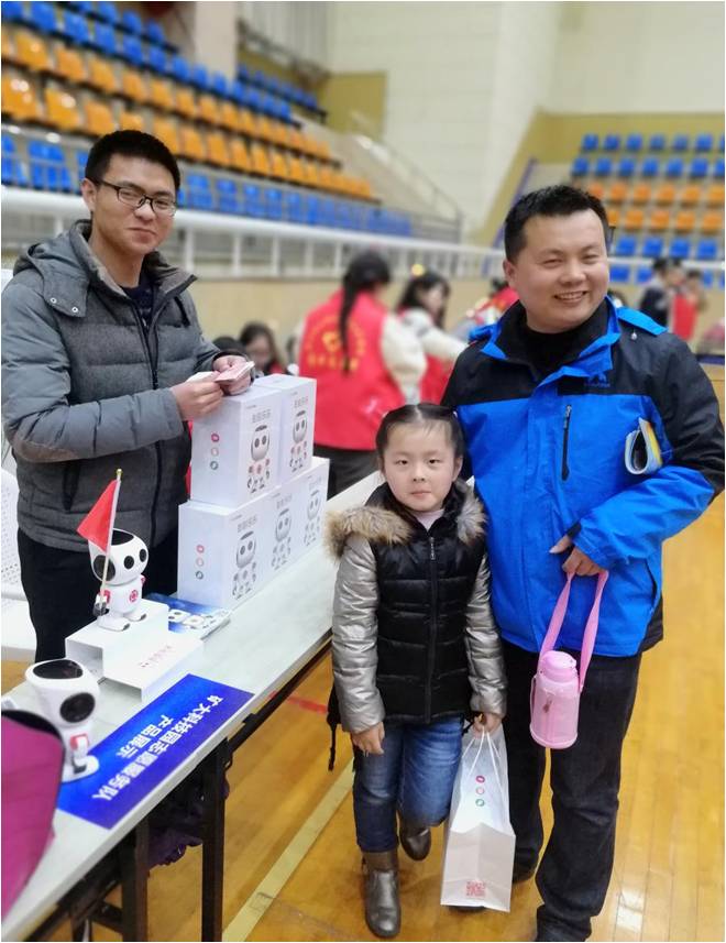 志愿产品展示聚人气。产品展示区人气高涨,各志愿服务队展示了香包、相框、手工制作工艺品等志愿产品,矿大科技园志愿服务队带来的“智能机器人”展示将现场气氛推向了高潮。
