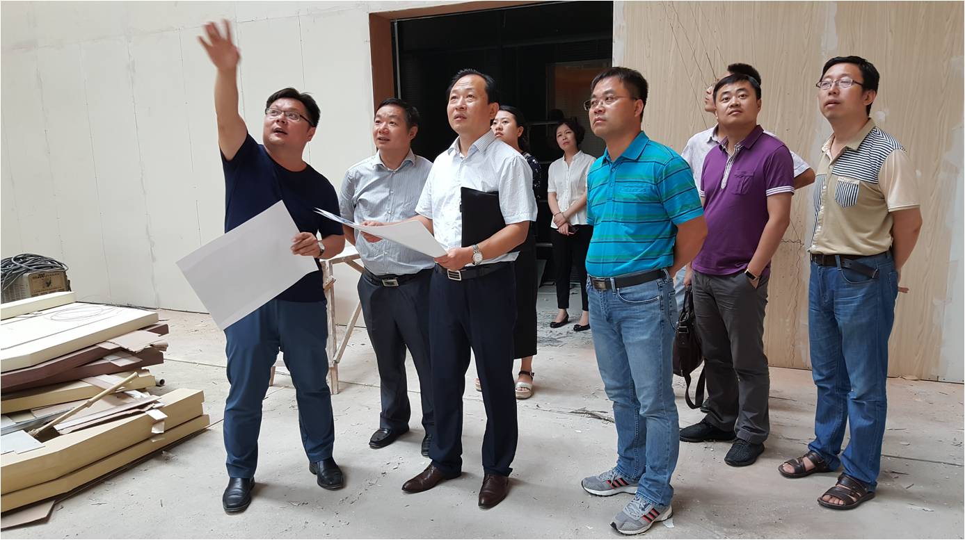 王卫清主任一行重点考察了科技大厦一层“2017年徐州高校科技成果对接周”主会场的施工建设情况,董海林总经理详细介绍了一层改造工程的设计、装修方案及施工现况,本着“安全第一、质量至上”的工程原则,确保安全、优质、高效地完成此次改造任务。王主任对主会场的设计、装修及现场施工进度表示肯定,同时,他提出矿大科技园应充分依托其创新创业优势资源,全面发挥其“赢在徐州”周二路演吧承办方的主导和带动作用,努力把科技大厦一层空间打造成为淮海经济区路演示范基地。