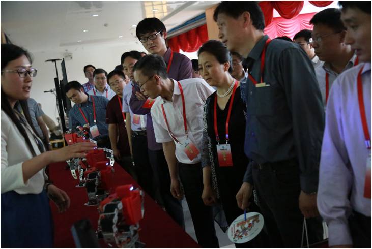 随后,一行嘉宾来到矿大科技园“国家级”众创空间—太阳谷创新驿站,董海林总经理首先向大家介绍了太阳谷创新驿站的建设与发展情况,接着在青年创业项目展示区,嘉宾们兴致勃勃地观看了矿大机电学院学生自行研发的矿山机器人等项目演示以及学生创业企业代表-木牛流马机器人的精彩表演。矿大学生团队研发生产的机器人,让嘉宾们倍感亲切;园区大学生创办企业的“技术含量”,让嘉宾们啧啧称赞。
