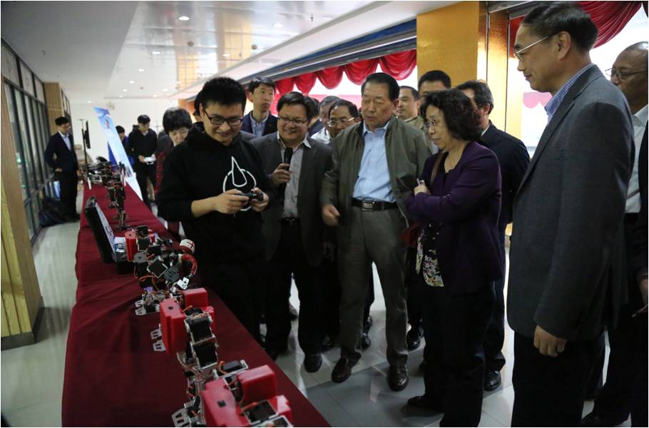 接着,一行领导又参观了矿大科技园太阳谷创新驿站,在青年创业项目展示区,大家兴致勃勃地观看了矿大机电学院、信控学院等青年教师研发的矿山机器人、无人机等项目演示,以及学生创业企业代表-木牛流马机器人的精彩表演。陈主任对矿大高水平的科技研发成果表示赞赏,并与葛校长就学生创业实践培训、高校科技成果转化与企业对接等方面交流了意见。
