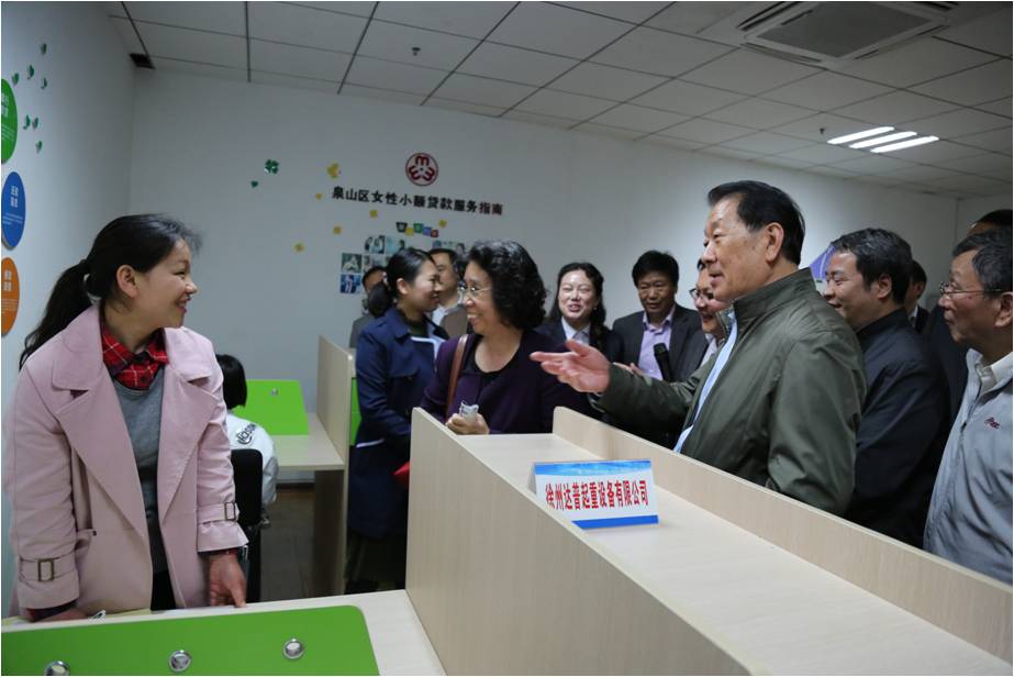 最后,陈主任一行来到了女大学生创业基地,深入了解女大学生的创业发展情况。陈主任来到普达起重公司代表面前,关切地询问企业目前的经营情况,当她听到公司发展状况良好、有不错的收益时,开心地笑了,同时也对在场的女大学生们提出了殷切的期望,希望“咱们女儿家”更加地独立自强,投身自己喜欢的事业,创造属于自己的一片天地!