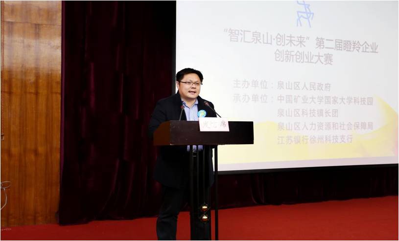 2017年3月17日下午,由泉山区人民政府主办,中国矿业大学国家大学科技园、泉山区科技镇长团、泉山区人力资源和社会保障局、江苏银行徐州科技支行承办的“智汇泉山·创未来”第二届瞪羚企业创新创业大赛在中国矿业大学文昌校区学术交流中心隆重召开。泉山区人民政府副区长、区科技镇长团团长董博,团市委副书记潘晓、徐州市委组织部人才工作处处长贺广启、徐州市科技局高新处处长江军,江苏银行徐州分行副行长王建伟等领导以及来自泉山区八大园区的负责人和园区企业300多人参加了活动。