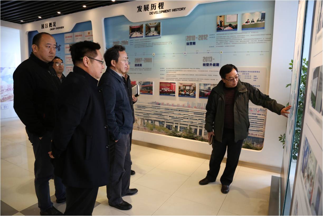 在矿大科技园展厅,陈杨钧副总经理向陆建康一行汇报了矿大科技园的建设发展历程,董海林总经理重点介绍了淮海科技城“创客街”的规划与建设情况。陆建康对矿大科技园取得的成果给予了充分肯定,并希望矿大科技园继续发挥其在企业孵化、成果转化及人才培养等方面的优势作用,助力地方经济发展。