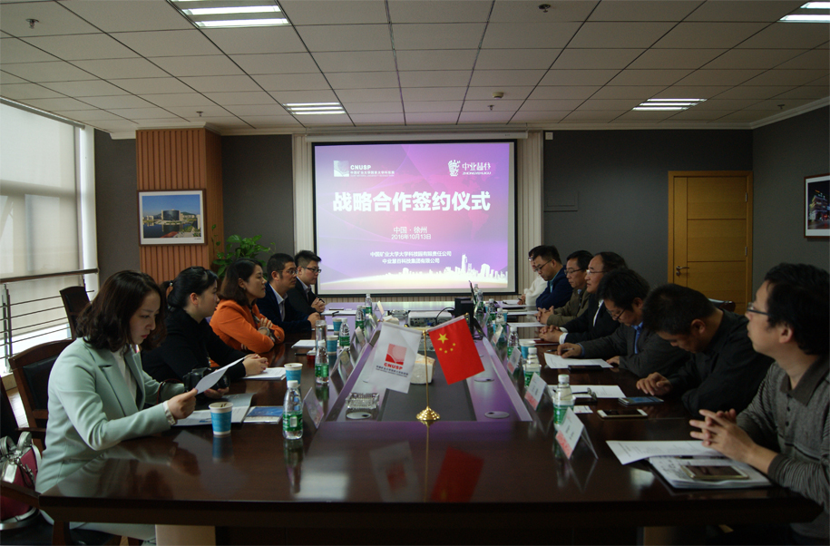 10月13日,中国矿业大学国家大学科技园与中业慧谷科技集团有限公司战略合作签约仪式在矿大科技园举行,中业慧谷集团董事长朱伶俐、中业慧谷徐州园区总经理姚强等,矿大科技园总经理张福生、矿大科研院副院长董海林、矿大科技园副总经理陈杨钧、王栋等参加了本次签约仪式。