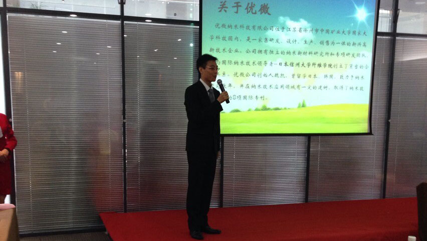 2014年9月18日,中国矿业大学国家大学科技园大学生创业企业—徐州优微纳米科技有限公司新品发布会在矿大科技园科技大厦1楼会议室举行,这是徐州市首次由大学生创业企业召开的新品发布会。徐州市大学生创业服务中心主任乔健、泉山区人社局局长潘建军等领导及20多家意向代理商及新华网江苏频道、现代快报、徐州日报等媒体出席发布会。