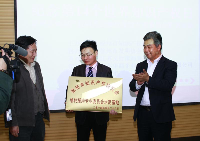 吕阳红主任和高存宝副局长为“徐州市知识产权研究会维权援助专业委员会示范基地” 授牌