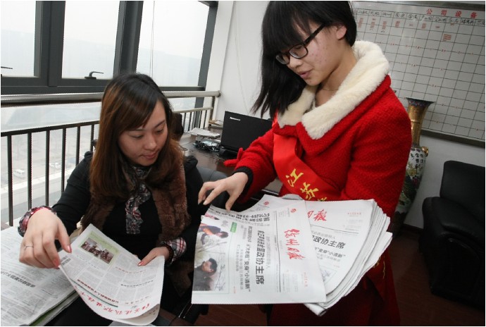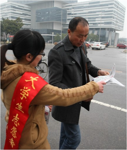 3月5日是学习雷锋日,今年是毛主席题词“向雷锋同志学习”50周年之际,又值国家召开“两会”期间,江苏建筑职业技术学院大学生志愿者小分队一行20余人于3月12日来到中国矿业大学国家大学科技园,开展“学习雷锋精神,宣传两会活动”的主体活动,并深入到园区企业内及普通市民中,热情宣传雷锋同志“助人为乐”、“为人民服务”的崇高精神,同时向企业员工和群众赠送了刊登“两会”活动报道的徐州日报。