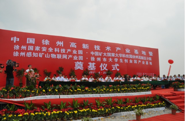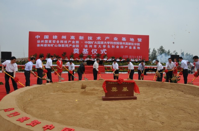 6月26日,徐州高新技术产业基地暨徐州国家安全科技产业园、中国矿业大学国家大学科技园徐州高新区分园、徐州感知矿山物联网产业园、徐州市大学生创业园产业基地奠基仪式隆重举行。教育部科技发展中心主任李志民、教育部科技发展中心副主任李健聪应邀出席仪式。市、区领导张敬华、段雄,毕于瑞、李淑侠、李成金、吴宝剑、吴卫东、汪文如、何长征、房浩出席会议并为基地培土奠基。铜山区委副书记、代区长刘广民主持奠基仪式。